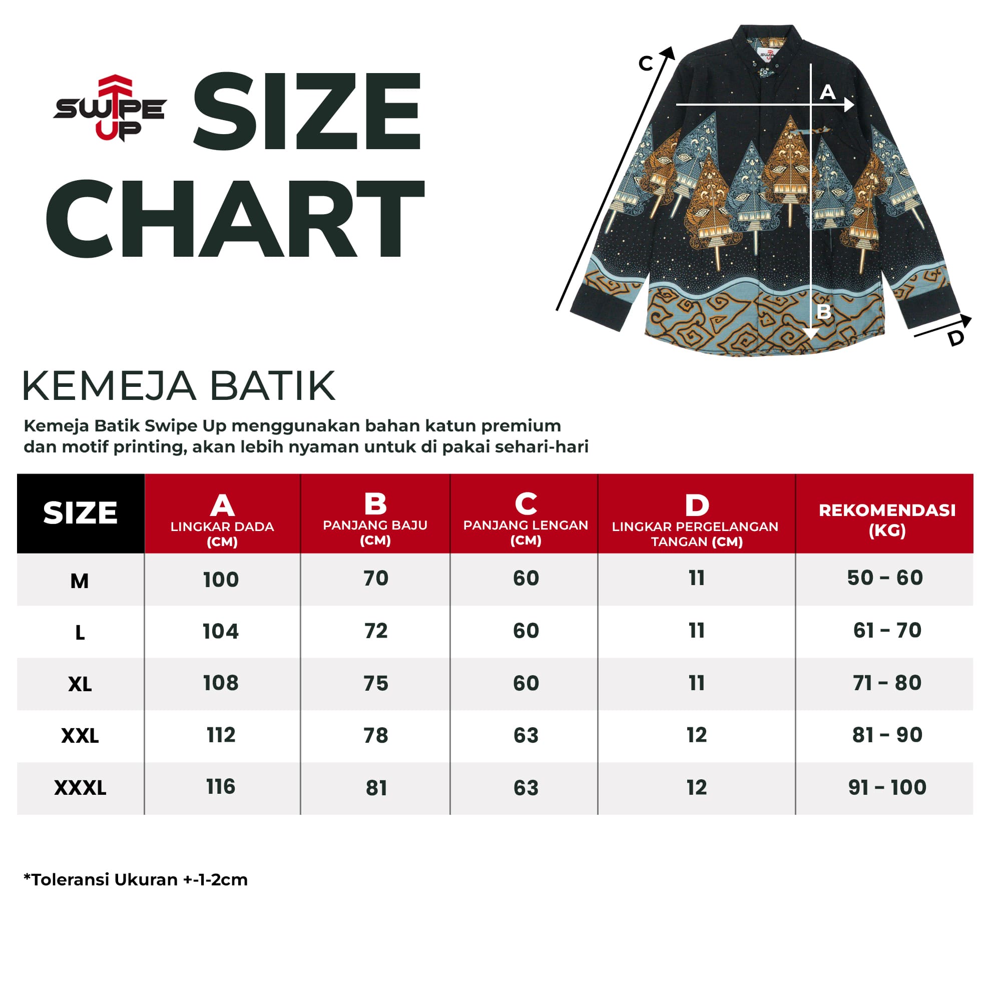 Size Pada Model : Tinggi 180 cm, Berat 72 kg, Menggunakan Ukuran XL.