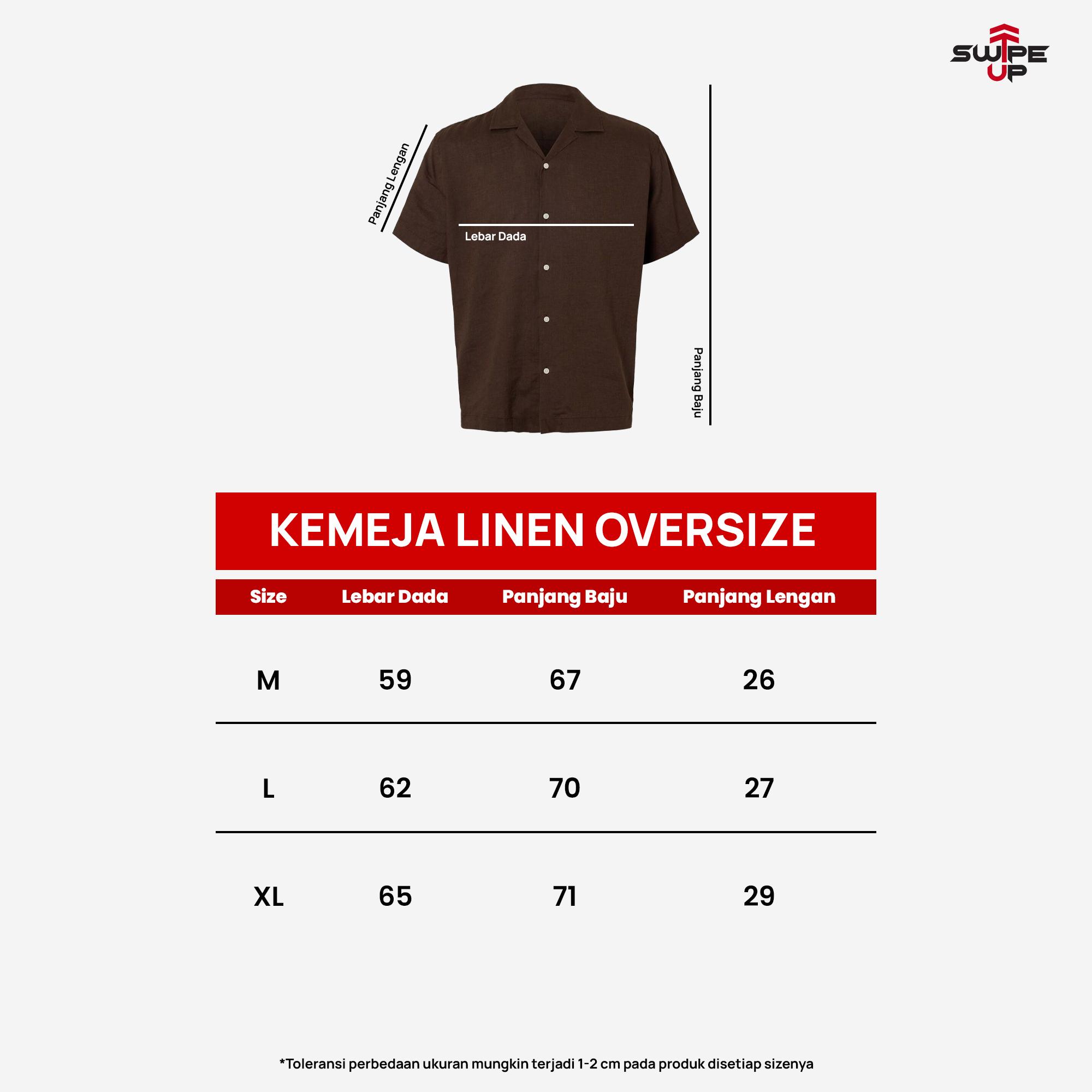Swipe Up Kemeja Linen Oversize Cuban Bowling Shirt Linen Premium Kerah Lengan Pendek Coklat
